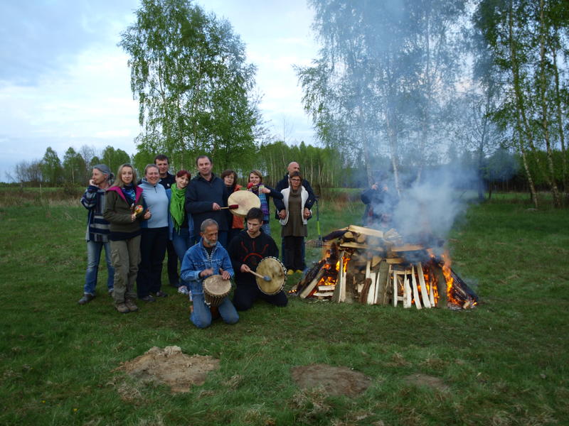 Po przyjeździe na miejsce zrobiliśmy powitalny krąg, a po kolacji, jeden z uczestników warsztatów Emil Witt opowiadał o swojej wyprawie do Amazonii.