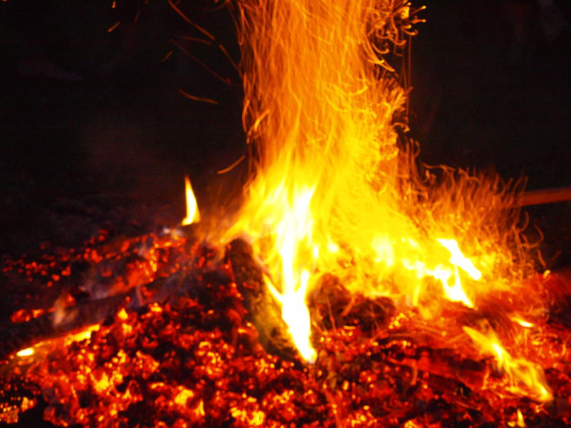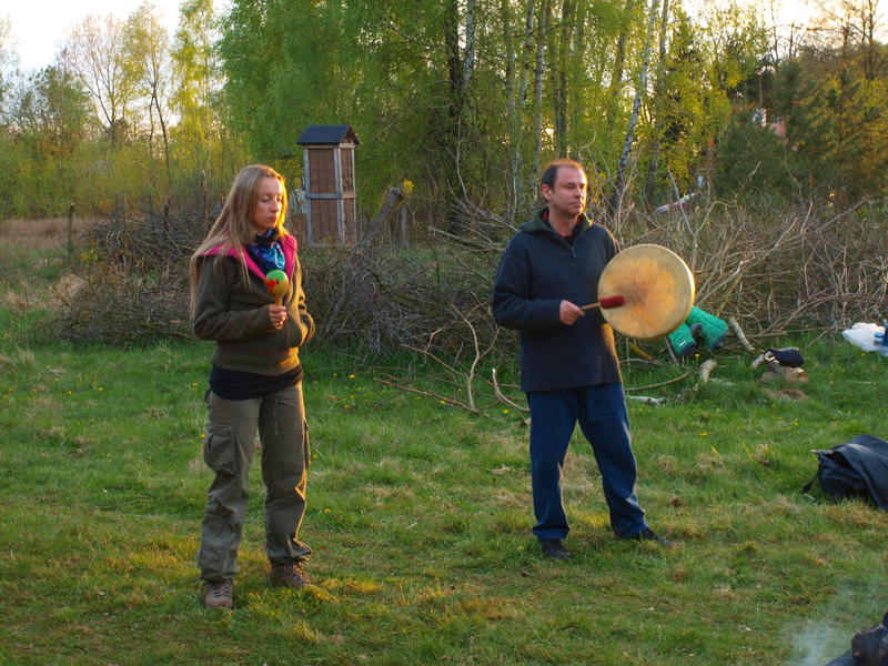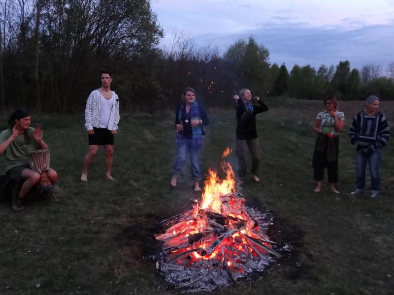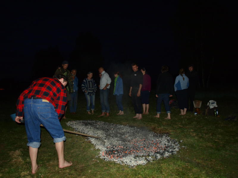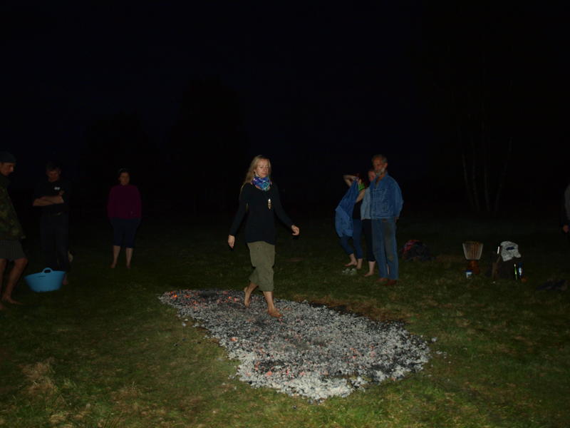 Drewno było suche więc nie mieliśmy żadnych problemów z rozpaleniem ognia. Ognisko paliło się chwilami bardzo mocno, a my graliśmy na bębnach, tańczyliśmy wokół niego i czekaliśmy aż wypali się na tyle, że będzie można uformować z niego ścieżkę ognia.