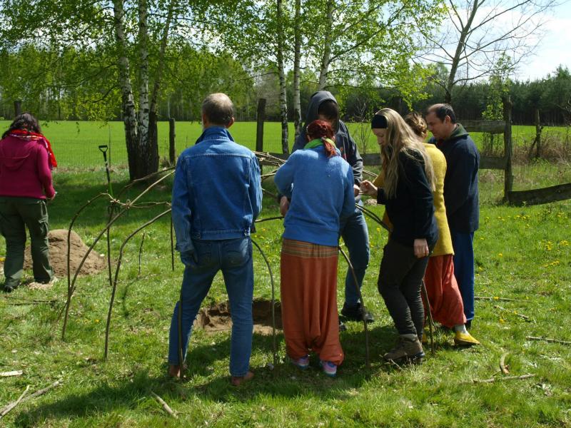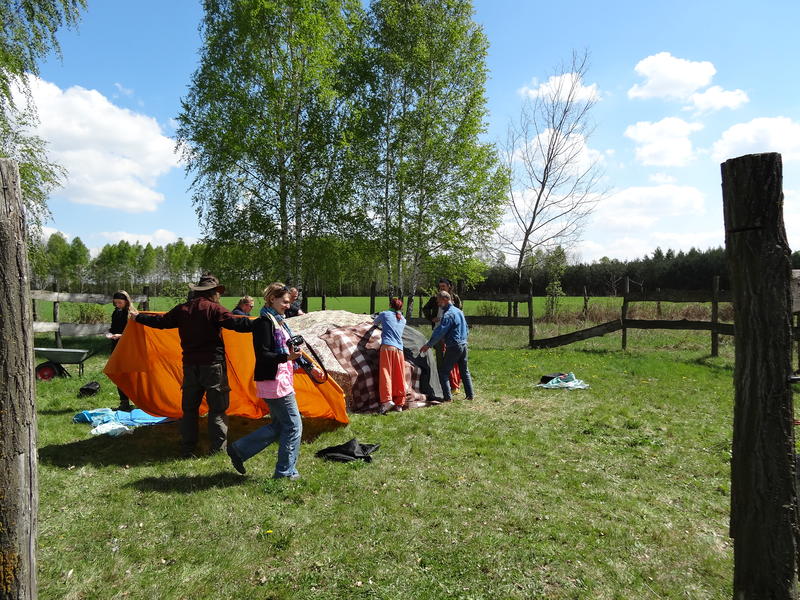 Po śniadaniu zabraliśmy się za budowę szałasu potu.