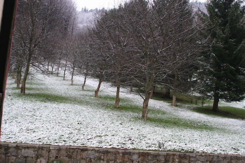 Gdy wstaliśmy rano zobaczyliśmy śnieg, który pokrył całą okolicę. Jednak po śniadaniu, na które zrobiliśmy moją "firmową jajecznicę" śniegu już prawie nie było. Później z każdą chwilą pogoda robiła się coraz lepsza.