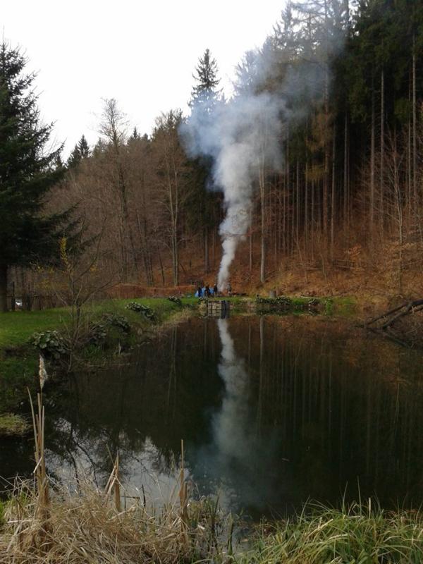 Drewno było bardzo mokre i mieliśmy dużo kłopoty z rozpaleniem ogniska. Jednak udało się to zrobić w miarę szybko i sprawnie.