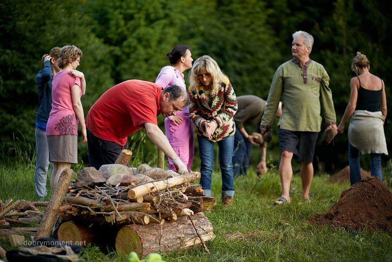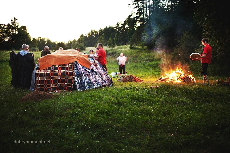 Budowanie ogniska do szałasu potu,